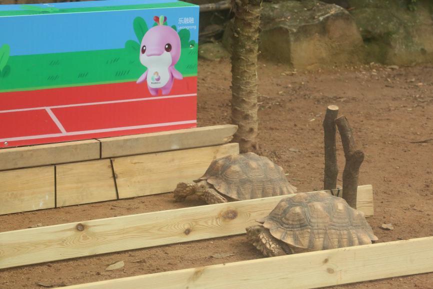 大熊猫“星一”“雅一”玩转足球、猕猴登上跳板花式“跳水”、水獭优雅发挥“自由泳”、长颈鹿凭借身高优势轻松“灌篮”、苏卡达陆龟慢速“赛跑”……