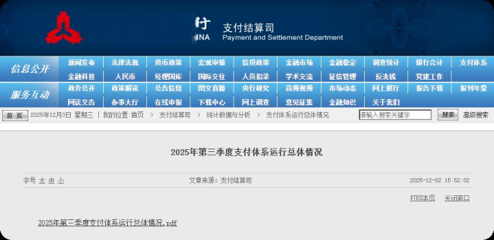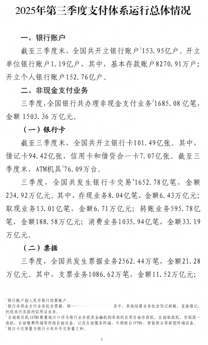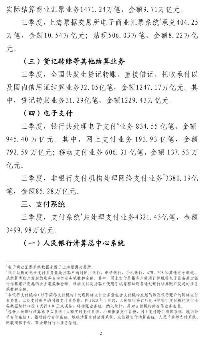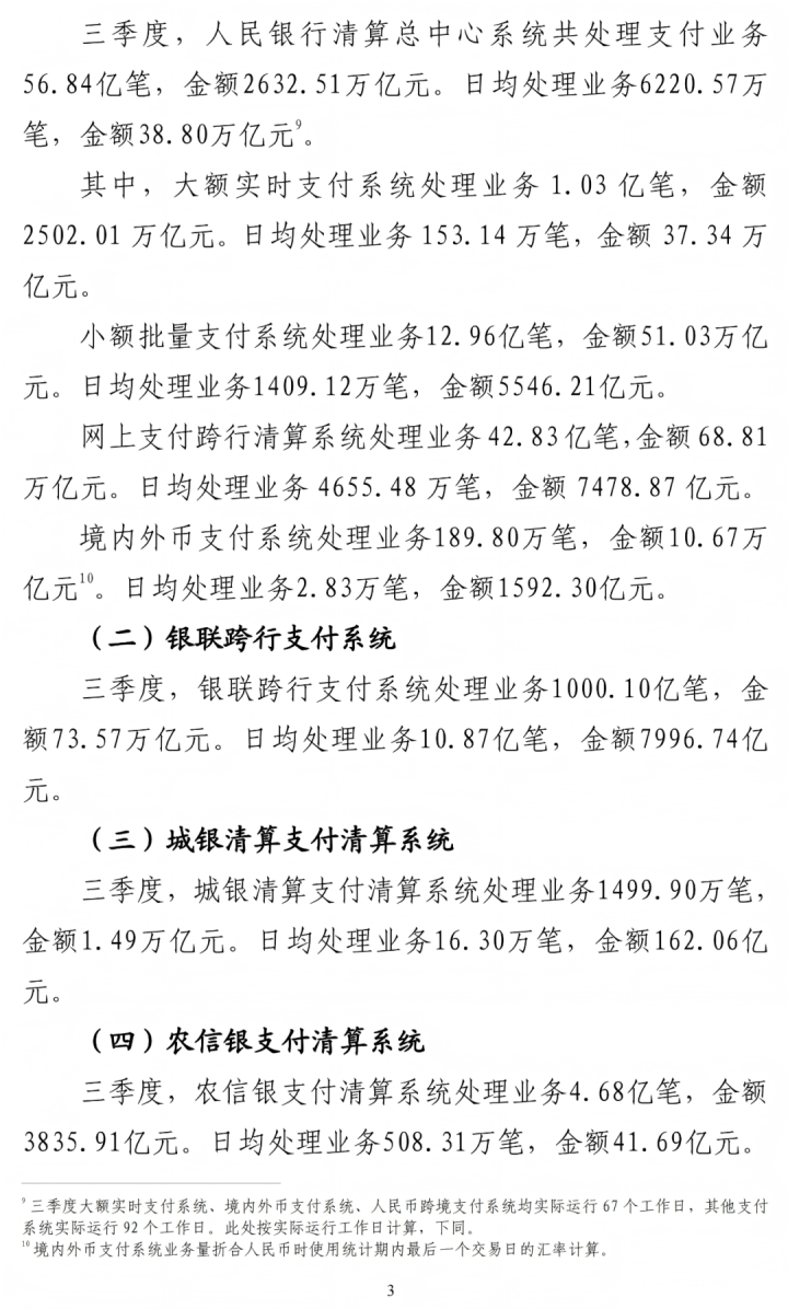 以下为《三季度支付体系运行总体情况》全文