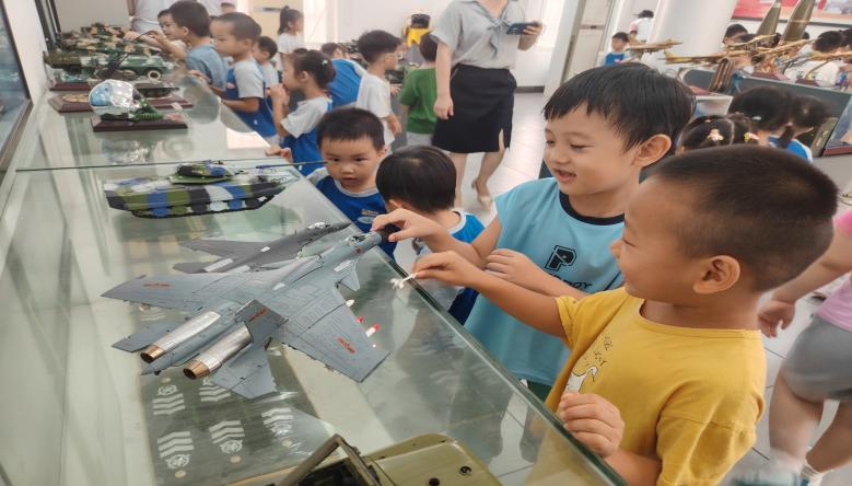 参观过程中,丰富的军事展品深深吸引了孩子们的目光。从古代远洋军舰到现代战斗机,一件件逼真的模型激发了他们的探索欲与求知欲。孩子们热情提问,老师们则用通俗易懂的语言,为小朋友们讲解每件展品背后的故事与历史意义。